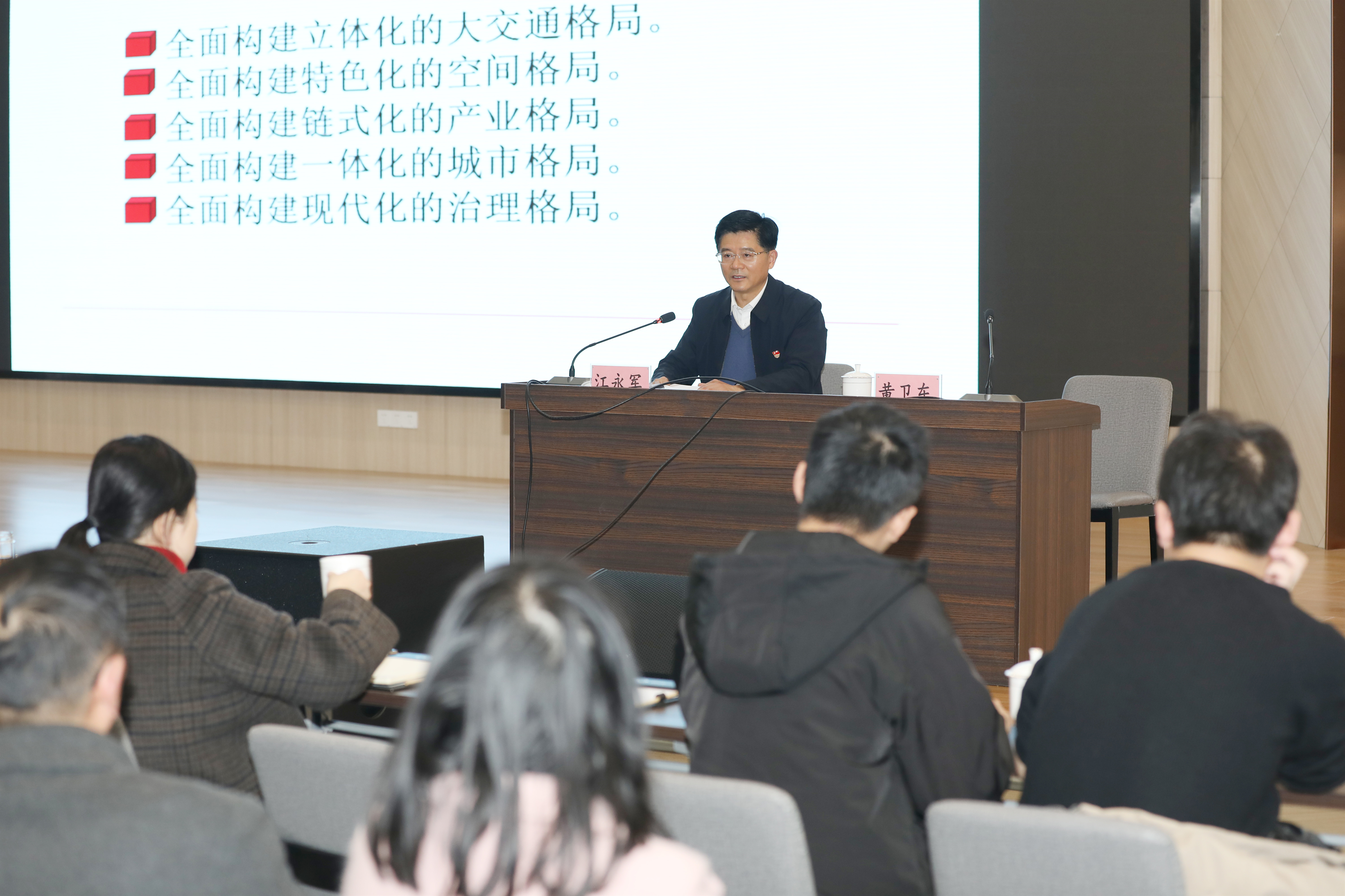 宏伟蓝图鼓舞人心,学习宣讲凝聚力量。12月11日,由南通市海门区委宣传部开展的学习贯彻党的十九届五中全会精神宣讲活动南通三建专场在海门謇公湖科创园会议中心胜利召开。南通市海门区委常委、区委办主任江永军作主题为《学深悟透践行十九届五中全会精神 持续推动南通三建跨越发展》的宣讲,南通三建党委成员、在海党员、股份开云网页版总部全体员工及下属各事业部、各单位驻海员工代表共计230多人参加活动。活动由海门区住建局党组副书记、副局长黄卫东主