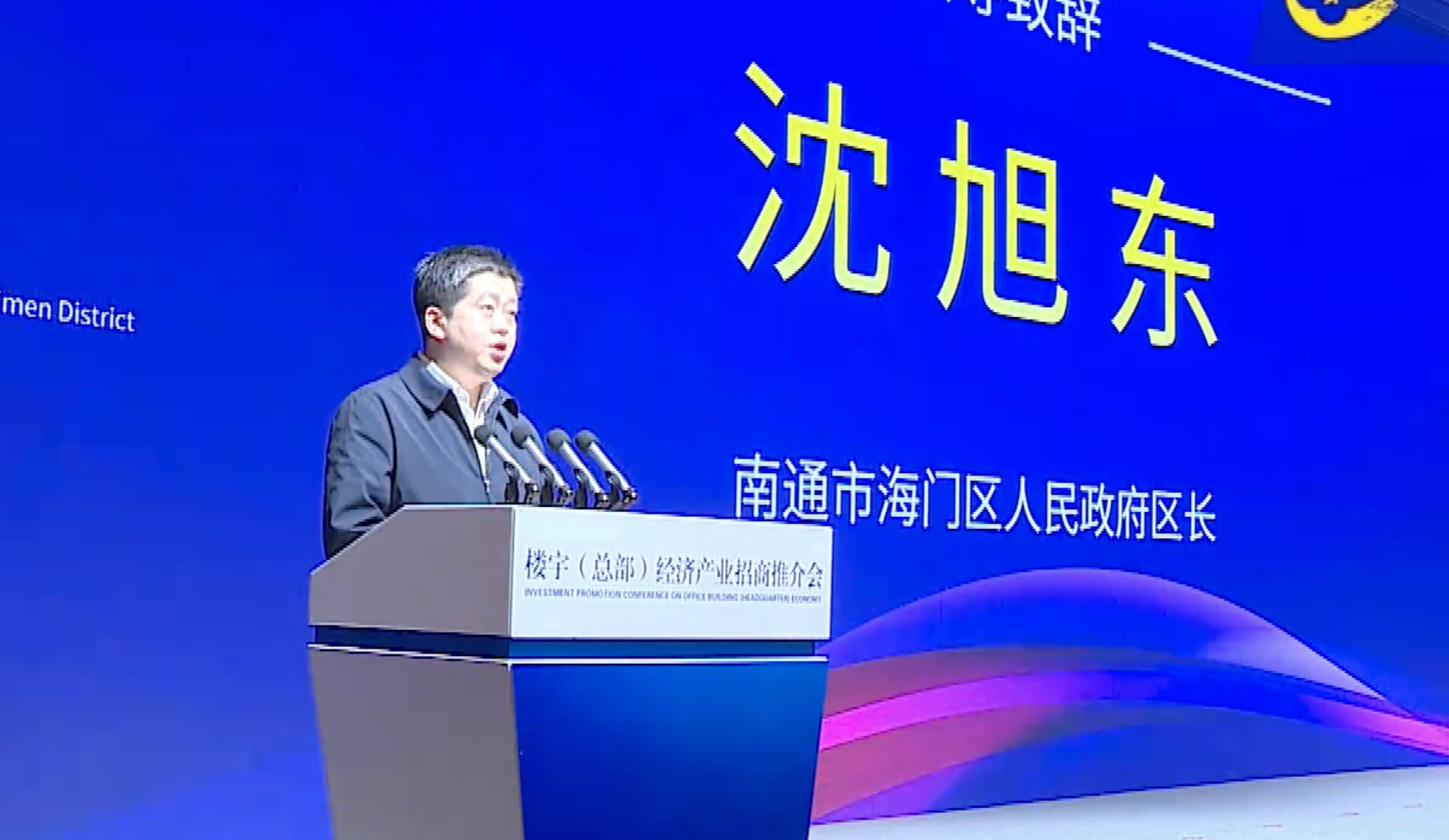 4月23日,2021中国海门经贸投资洽谈会暨楼宇(总部)经济产业招商推介会在海开幕。海门区委副书记、区长沈旭东出席并致辞,区委常委、宣传部部长、海门经济技术开发区党工委常务副书记施俊作海门楼宇(总部)经济专题推介,副区长周国强发布北部新城和商务创智南城总部地块规划方案,副区长宋涯主持推介会。